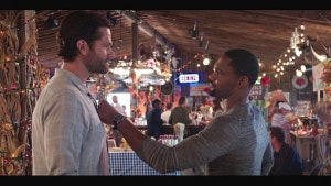 Trey is now a guidance counselor, which is a bit mystifying since I teach in a Masters program that trains people how to be school counselors and it requires that education usually, but okay. He picks up some food for the Harvest Fest while he talks to Micki, uneasy after their conversation.
