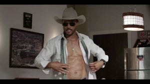 Meanwhile, Trey is officially made a Ranger, and his mom comes to town for that celebration. Liam, Ben and Cassie get a preview show with Trey for some reason skidding into the living room with unbuttoned shirt – which they (and we) appreciate, but his mama? Not so much.
