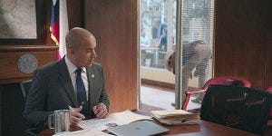 Cassie comes out and shows Walker her new badge (he’s texting with Geri and they’re both clearly wanting to say more than they are).