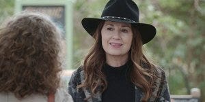 Cassie and Geri greet each other warmly, while Walker bristles. Geri reminds him to give her a chance.