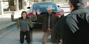 The local cops arrive just as Cassie is insisting that any reasonable person would have come to the same conclusion she did. The officer orders them to their knees.