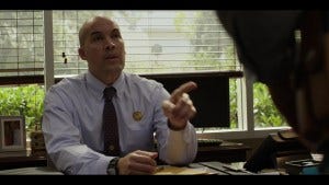Walker tries to make a joke of “I may not be quite right in the head,” but he also more seriously confides that when he’s at home, he can’t think about anything but his wife and what happened. In the exposition of this scene, we find out a few more details about what Emily was doing at the border. Walker told her how not to get caught when leaving food and water there for migrants, and how to avoid the cameras.