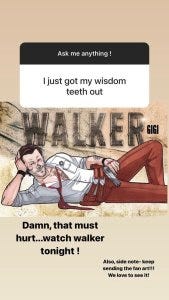 There was again a flurry of articles and interviews about the new show, including Keegan Allen (Liam) taking over the CWWalker Instagram account for the day. He clearly had a lot of fun doing that, with many of the cast also getting into the act, and even including some fanart. I’m only including one because I saw @StabGigi say she was thrilled to have her awesome art included. It’s clear the cast and crew are getting along great, and the same sort of cooperative atmosphere that Jared and Jensen established early on for Supernatural are something that Jared has clearly taken to Walker.