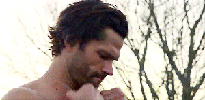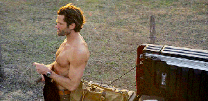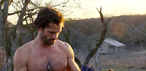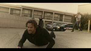 Walker drives a little ways out of town then gets out and strips to the waist, changing shirts and putting on a cross on a chain and slapping on some (bad) aftershave. His change from Walker to Duke gave a grateful fandom some gorgeous shots of shirtless Padalecki in the Texas sun. (Screencaps and gifs of that scene took up half my timeline the next day. Not complaining).