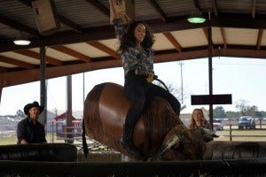 “Adriana” admits that not being Micki for the day is kinda exhilarating. Then it’s time for Adriana to show her stuff – riding the mechanical bull. Because Micki is damn good at just about everything, she even beats Walker’s time on the bull.