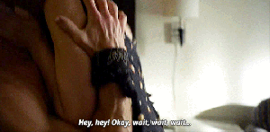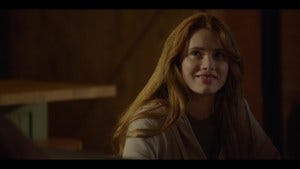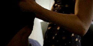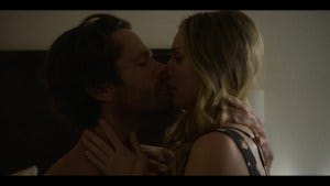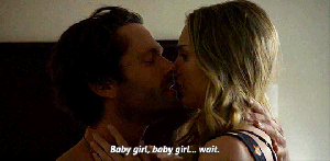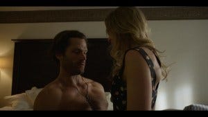 They kiss passionately, she pulls his shirts off and unbuttons her dress, and for a minute it looks to Supernatural fans a lot like that Sam/Ruby intimate moment from a long time ago. (Look, we Supernatural fans remember those moments, what can I say?)