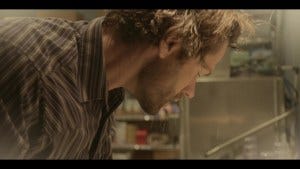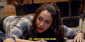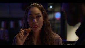 Flashback to the night before their last heist, Crystal and Clint singing karaoke in the bar, Cordi meeting clandestinely with Liam in a back room. He’s stressed; does the face dunk thing again.