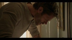 Back to “Present Day” and Walker freaking out about August texting Twyla (without knowing who he was texting) and her texting back. He seems on the verge of a panic attack and dunks his head in a sink full of cold water to calm down.