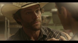 Padalecki does a good job of letting us see just how reluctant Walker is to engage in this deception, though. As soon as Twyla is tucked under his chin, he closes his eyes, steeling himself to go through with it.
