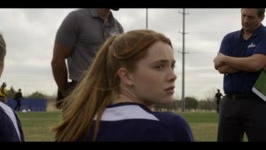 She capitulates surprisingly fast though, which was a bit unrealistic, telling him that her mom was a big deal in college soccer and her dad said he never missed one of her games at UT.