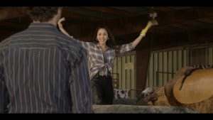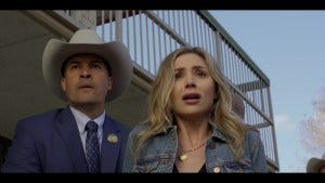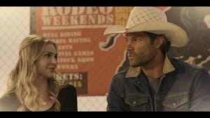 The episode begins “Four Months Earlier” at a rodeo, Walker in a ball cap and looking a little scruffier than usual as things like calf roping go on. The attractive blonde woman in the photo August developed (Twyla Jean, guest star Karissa Lee Staples) comes on to him, saying she’s worked up the courage to introduce herself.