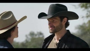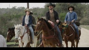 The riders meet up with Abeline and Bonham and a horse trailer after their ride. It seems like Bonham might know what August is planning, but Cordell doesn’t – he asks but Augie keeps denying anything’s going on.