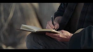 Shades of Sam Winchester sitting against a tree with the journal…