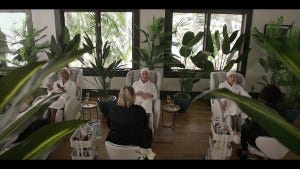 The ladies go to a spa, where Geri is supremely uncomfortable and none of them can stay off their phones and Geri thinks the plants might be giving them too much oxygen and what?