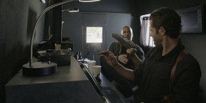 Geri seems too unhinged from the jump, barely holding it together, and Walker keeps wanting to go in too soon so nothing bad goes down, especially after that reference. James reminds him they don’t have anything that would hold up in court, saying let’s not take our shot and miss again, and Walker snarks back at him.