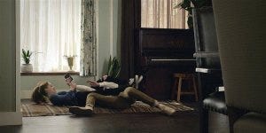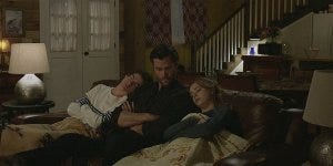 Back at the house, Stella and Augie fall asleep on the couch, their heads on their father’s shoulders.