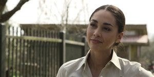They bring a cuffed Cali out. “Take off these cuffs,” she says to Walker and James, “and I’ll give you proof of who murdered your wife.”