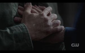 The close up once again of their hands, clasped in mutual support like at the start of the episode when we flashback to that night in the medical examiner’s office, reminds us that is at least some of what this connection is about. It’s also reminiscent of the finale of Supernatural once again, Sam and Dean’s lifelong bond symbolized by a similar close shot of their hands, support until the very end.