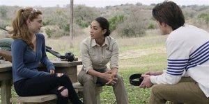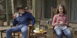 Meanwhile, back at the ranch (literally), the rest of the family is also reeling from the news. Bonham is as focused on revenge as his son and his grandson, saying that he hopes they find the “sumbitch” and doesn’t care what happens next. Abeline reminds Cordell that the kids need to hear it from him (and adds to Bonham that she also hopes they find the sumbitch.) Pileggi and Hagan really inhabit their roles; I don’t know how much riding they’ve done before this, but they look entirely comfortable and at home on their horses and I enjoy seeing the slice-of-life on the ranch scenes on this show because they give us important context for the whole Walker family.