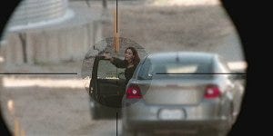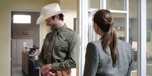 Micki meets with Serrano, with Cordell and other Rangers with rifles at the ready trained on the cars pulling up to meet with her.