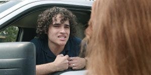 When Stella finds their car keyed after school, she leaps in front of the boy’s pickup truck and accuses him of being the perpetrator. He sneers back.