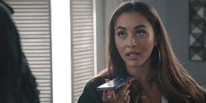 Stella is also freaking out a little because her dad didn’t come home the night before, which must bring back all the trauma of the year he was undercover. Colton joins her in detention, and she informs him that she doesn’t want to talk about her dad. He retorts that he doesn’t want to talk about his mom. Then Stella gets a text – from someone named Liz. Apologizing for dinging her car.