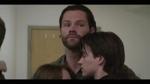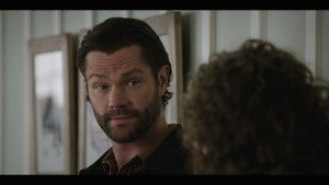 Sometimes I’m struck by how good Jared Padalecki is at showing you what his character is feeling, even without words, and that little moment was one of those times. His relief, his overwhelming love for his children, his own missing their mom – it’s all there in the little toss of his head, his smile that encompasses all those emotions.