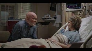 Turns out Abeline had a TIA and no lasting residual symptoms, but the doctor recommends stress management and aspirin and other preventive measures – which Bonham definitely takes to heart. Abeline hasn’t lost her sense of humor, and reminisces about the first time they came to the hospital – they were dating and Bonham tried to impress her with homemade spaghetti and meatballs, which were so undercooked that she got food poisoning. And they still ended up together!