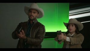 Cordell walks in and Stella triumphantly says oh here’s my dad, he’s a Texas Ranger.