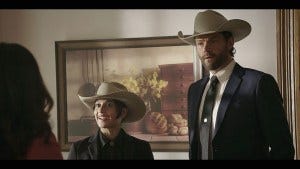 Liam introduces himself as Bonham’s son to the feed store guy and he’s like oh, Texas Ranger?