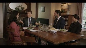 Then Kevin asks about the anarchist group behind the abductions. Cordell says they don’t know much yet. Kevin also wants to know if anyone reached out to Julia after the article. Cassie suggests maybe they should stop the questions as Julia gets uncomfortable; Kevin makes a joke that if anyone wants to stab him, the steak course is on the way.