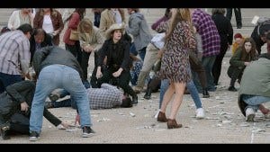He asks them to stop it, putting away his gun, as the riot intensifies around poor Cassie and Trey. It’s a Lord of the Flies situation, not a very pretty view of humanity for sure.