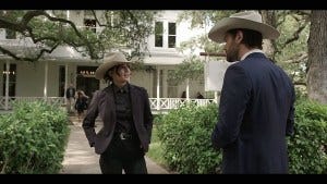 The Walker family is under a lot of stress, much of it caused by Bonham being horribly cranky while ostensibly trying to make things LESS stressful for Abeline in the wake of her TIA. He’s grumpy with August, who he’s having a hard time forgiving even though August is bending over backwards trying to make it up to everyone. He was grumpy with Cordell last week, leaving him this week saying he’s trying to avoid even going over to his parent’s house in the wake of the ‘find your own place to live’ advice. And he’s grumpy with Liam, who is still really floundering trying to figure out who he is and what he wants to be – it doesn’t seem to be a rancher, if the cranky feed store guy who goes off on him for using too big words can be believed. (I felt so bad for Liam there, having been someone who maybe once or twice got called out for using too many big words…) Liam was trying to help with his offer to go down to the feed store to straighten things out, but Bonham immediately warned him not to mess it up instead of being happy about the offer.