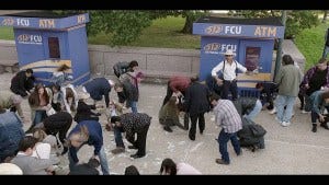 Trey and Cassie end up there to find ATM machines spewing cash and a riot going on in response, while someone records the mayhem. That’s apparently what the “hostage” situation people were actually up to!