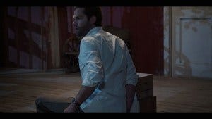 Cordell has a flashback to that awful time, and whirls around, yelling “Hello!” like it will tell him if anyone is there. He’s freaked, and who can blame him?