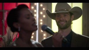 Cordell and Geri dance under the mirror ball, Cordi showing off his dad jokes – another Padalecki real life thing – both feeling like they’ve turned a corner and trying to put a positive spin on things.
