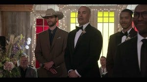Cordell and his son have a bonding moment getting dressed for the wedding, and Augie finally tells his dad that he wants to enlist in the Army – and he wants to go early, instead of finishing his senior year of high school. Cordell is dumbfounded – he literally has to sit down – and you can tell he’s trying so hard to not say the wrong thing to his son but also doesn’t think it’s a good idea.