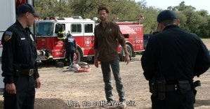 That made me tear up partly because it was such a beautifully played father-daughter scene, and partly because that’s a line from the Supernatural finale too, when Sam gives his brother the gift of permission to go in a more permanent way. I don’t know if it was a deliberate call back, but it made me even more emotional than I was. I’m sure the parallel wasn’t lost on Padalecki, who understands intimately the importance of that finale to many fans.