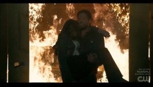 Cordell pulls up and hugs a freaked out Geri, who tells him Gale is still inside. Cordell gathers her up and manages to get them both out of the raging fire just in time, looking like Dean Winchester carrying his little brother out of another house burning up.