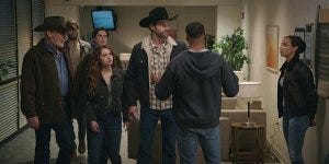 He takes her encouragement, though, puts on his hat and pulls the Rangers together to give them a pep talk. He reminds me of Sam Winchester in the bunker, becoming the leader that we all always knew he could be. Cordell steps up too, saying that James was the target and it seems this was a crime of passion – so they need to look into all James’ old cases for potential suspects. He also lets them know that the Captain is in a rough spot and he can’t promise them that everything will be okay, but that he did promise that they’d figure this out. He’s still worried about being in charge, saying that “the Star is only as good as the person wearing it, right? Right now the person wearing it is a little nervous, scared. I imagine some of you might be scared too, but that’s okay, we can use it for fuel. I keep asking myself, what would James do? We can honor him by bringing about justice – morally.”