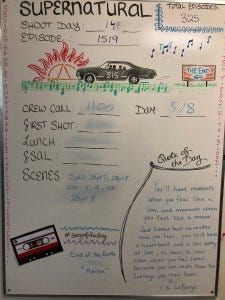 Last week location scout Evan Tran posted this photo and tweeted: That’s a wrap for me on #Supernatural. I wish I could continue on this #amazing show. #SPN has given me many positive experiences, and I’ll always be grateful. Thanks #SPNFamily for one last ride. #SPNFamilyForever #SPN15 #EndOfTheRoad