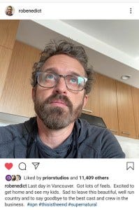Rob Benedict posted his goodbye message the next day, his pretty blue eyes moist and his expression wistful. Best cast and crew in the business, for sure.