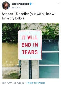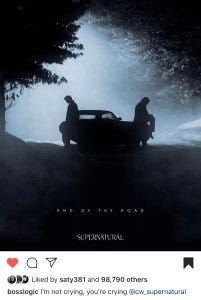 Jared Padalecki’s tweet that day was not quite as optimistic – and turned out to be prescient, because by the end of last week there were MANY tears as the show wrapped its penultimate episode and began filming of its final episode ever, the series finale of Supernatural.