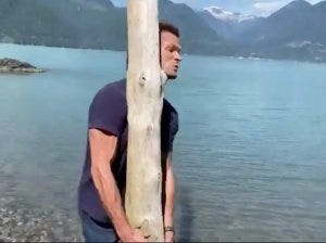 It reminded me of this time – perhaps that same location – Jared and Jensen being just as playful (with slightly smaller logs…)