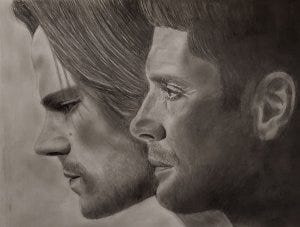Sherri @shr2da1, whose original art graces the pages of There’ll Be Peace When You Are Done, posted her original art of “the boys”, and it looked as much like an emotional Jared and Jensen as Sam and Dean.