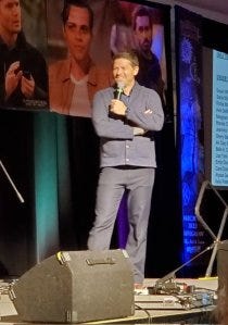 Saturday was immediately extra emotional because Tim Omundson also returned to the Supernatural convention circuit, taking the stage and walking to the mic as the audience gave him a standing ovation. He was a bit overcome by the response, and so was I – but it felt incredibly good. After Rob’s stroke and Tim’s stroke, to have them both back onstage and acting again and speaking about their respective recoveries is both inspiring and hopeful at a time when we all need hope very badly. Tim had also been onstage yesterday, but I wasn’t there yet.