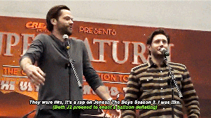 Jared: When Jensen had to say the exorcism, he was like, I’m gonna do a bad job so I won’t have to do it again!