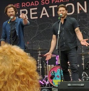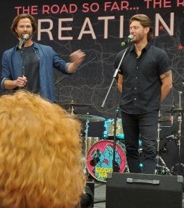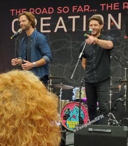 The panel ended with the traditional J2 fist bump – and then the band and Richard broke into the (unfortunate) theme of the con, singing 1-877-Cars-4-Kids to Jensen’s utter confusion. Which was adorable.