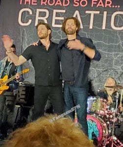 They did the jump a little differently because of Jared’s bad knee – Jensen gave him a fistbump side hug for being good and not actually leaping like he always does. Get that knee fixed, Jared!