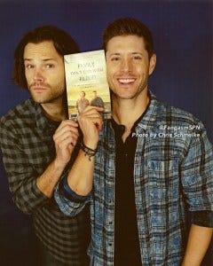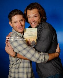 Family Don’t End With Blood is an inspiring, emotional book written by the Supernatural actors and fans about what the show has meant to them. Jared, Jensen, Misha, Kim, Briana, Ruth, Rachel, Mark, Matt, Rob, Osric, Jim and Gil and a dozen Supernatural fans all share their very personal stories of how being on Supernatural and part of the SPNFamily has changed their lives. We love hearing that reading this book has inspired others to keep fighting too – and every purchase benefits Random Acts and Attitudes in Reverse to help make a difference!